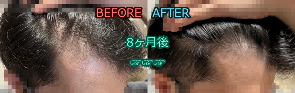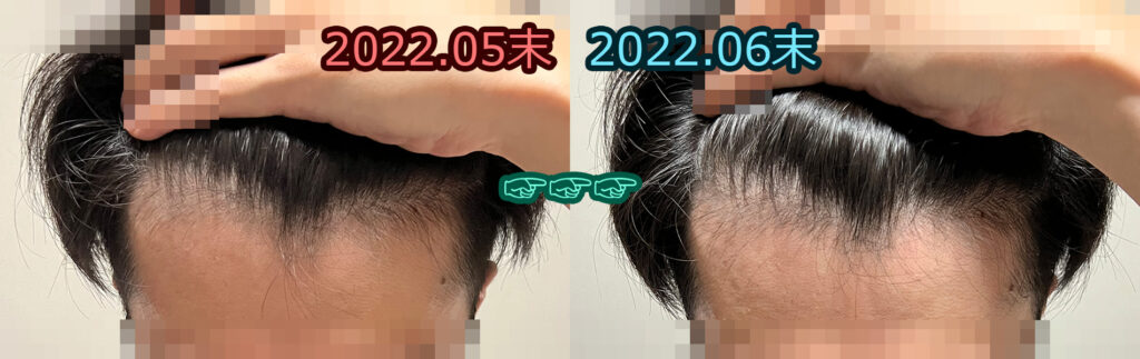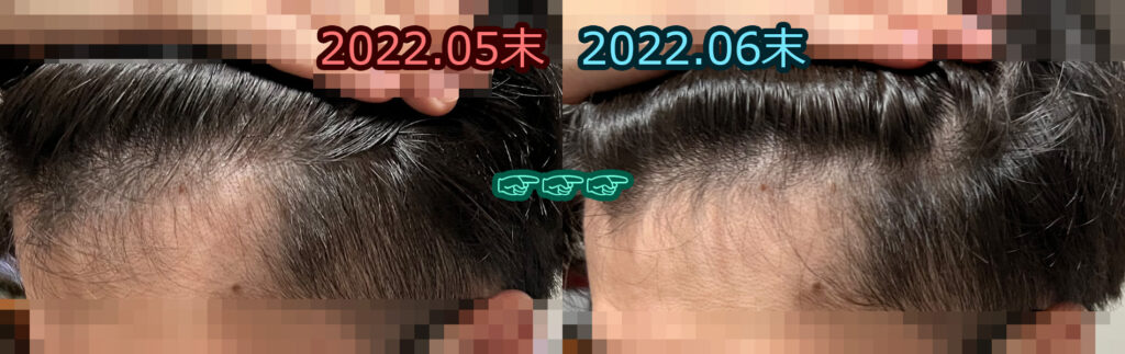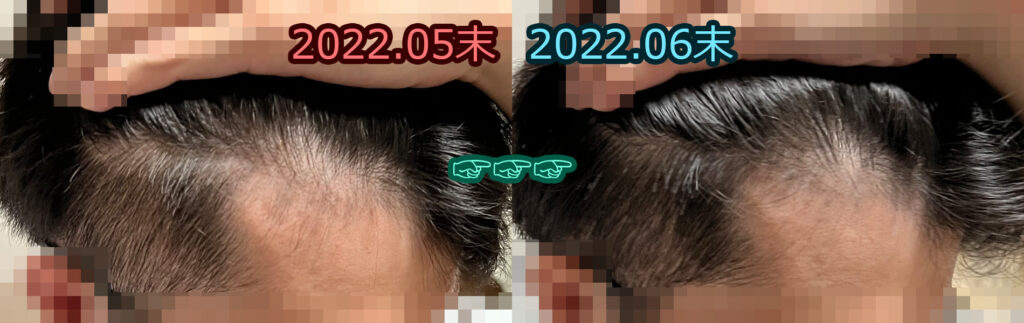 見比べてみると若干ではありますが、生え際の産毛が太くなった気がします。(気のせいかもしれません。)
